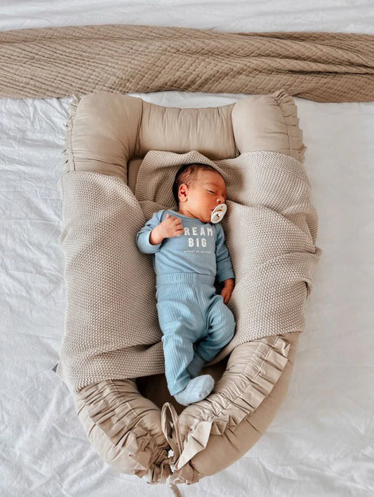 Baby Nest Bej cu Volănașe - Twindeco - Beige Cotton Flower