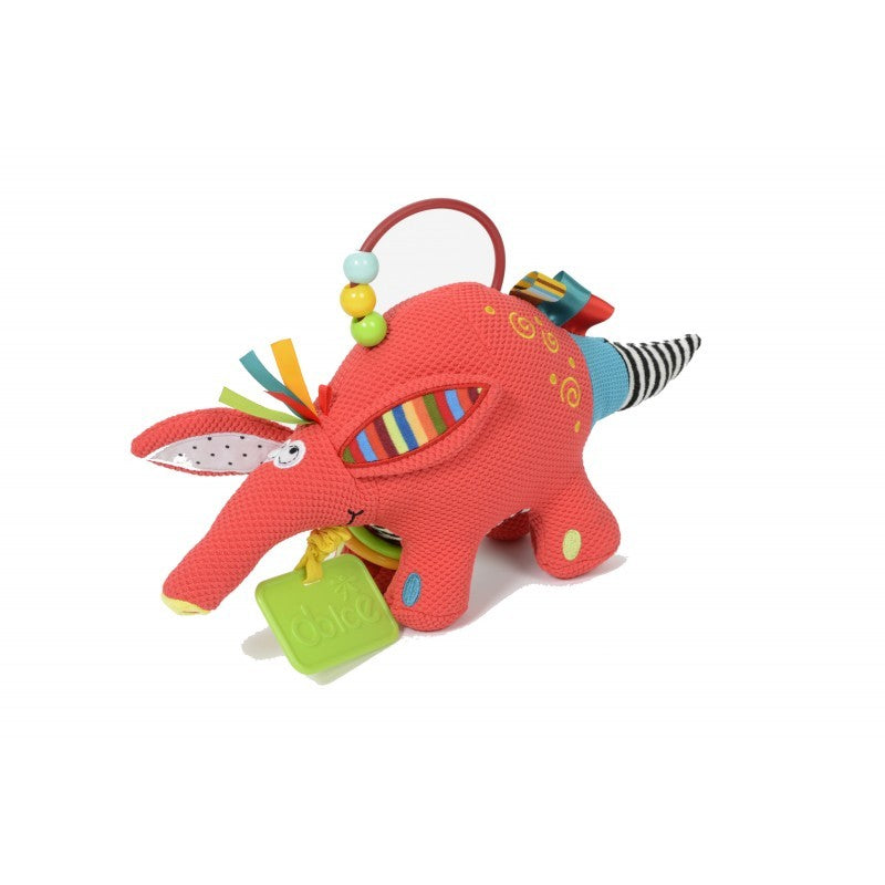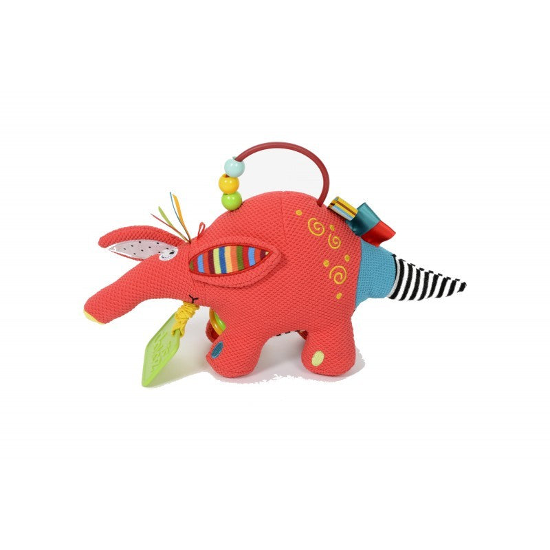 Acest aardvark puiuț poate fi ușor luat și îmbrățișat de mânuțele mici. Dacă este cumpărat împreună cu aardvark în varianta mare, fac un set adorabil. Jucăria are un mâner de prindere cu mărgele, urechi încrețite și o jucărie de dentiție care vibrează atunci când este trasă și care va face copilul să se amuze.