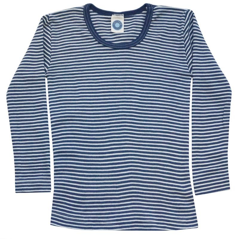 Bluză cu mânecă lungă din lână organică și mătase, dungi albastre - Cosilana