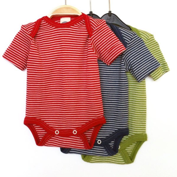 Body lână și mătase cu mânecă scurtă, organic - Cosilana - dungi verzi