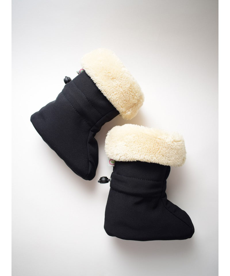 Sistemul de ajustare asigură o potrivire perfectă, adaptându-se ușor pe măsură ce piciorușele bebelușui cresc. Botoșeii de iarnă pentru babywearing sunt confecționați din același material softshell premium ca și protecțiile de iarnă, oferind o protecție excepțională.