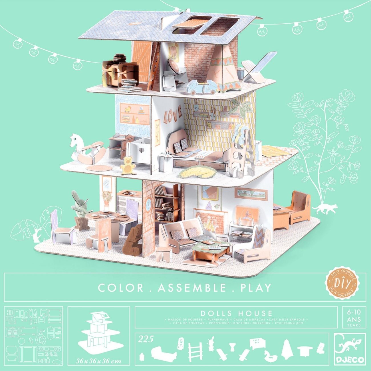 O nouă căsuță Djeco, cu peste 225 accesorii pe care le poți asambla și desena pentru a crea casa ideală. Ore și ore de activitate creativă, fără foarfecă sau lipici, piesele fiind pretăiate, gata de asamblare.