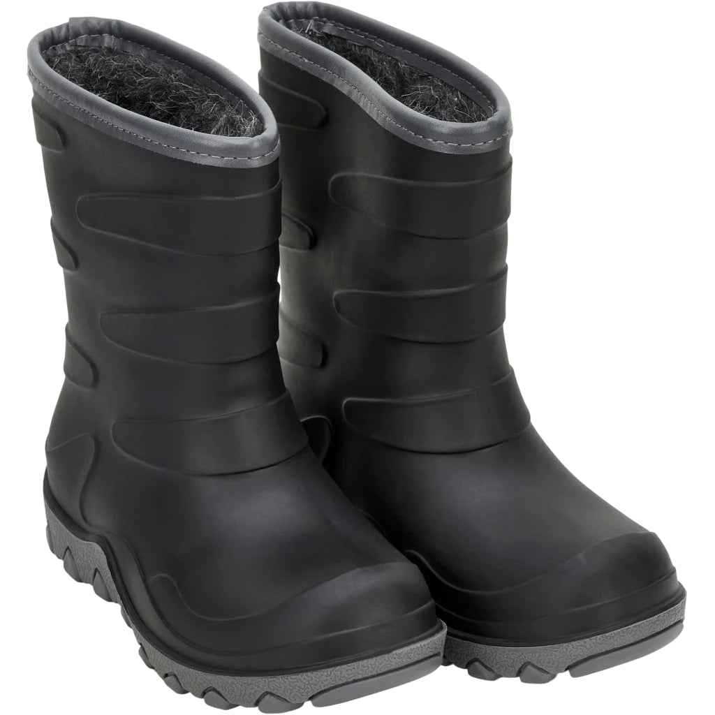 Cizme usoare din cauciuc 100% pentru anotimpul rece, impermeabile, perfecte pentru copiii activi, care petrec mult timp in aer liber. Cizmele sunt foarte confortabile, rezistente si antiaderente, fiind prevazute cu o talpa speciala, modelata grosier, care asigura aderenta chiar si pe cele mai alunecoase suprafete. Sunt captusite cu o captuseala calduroasa din lana si sunt 100% rezistente la apa, mentinand picioarele calde si uscate pe parcursul intregii zile.