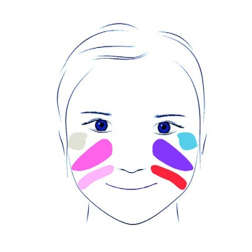 Conținut: pensulă plată, burete, 6 pastile cu vopsea pentru față (6 x 6g): roz, roz pal, roșu, violet, albastru deschis, alb.