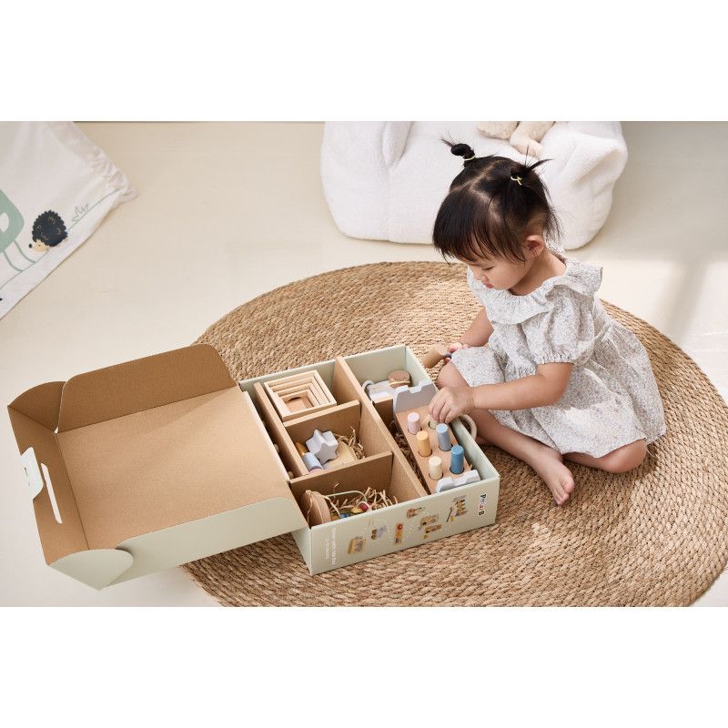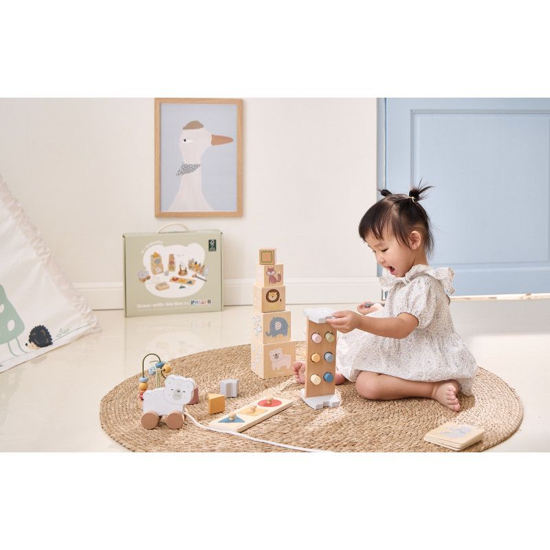 Cutia „Grow-with-Me” – jucăria perfectă pentru fiecare etapă de dezvoltare a bebelușului! Conform filozofiei noastre, am creat colecția Grow-with-Me Box, un set de jucării educative gândit special pentru a sprijini învățarea și dezvoltarea bebelușilor în fiecare fază importantă a creșterii lor. Împinge-l să își pună în mișcare abilitățile motorii! În această perioadă, bebelușii își coordonează tot mai bine mișcările mâinilor și picioarelor, dezvoltându-și forța și dexteritatea degetelor. Ei sunt fascinați de culori vibrante, animale și încep să exploreze dimensiunile, formele și spațiile din jurul lor. Această cutie conține jucării care stimulează curiozitatea lor, dezvoltă noi abilități și îi încurajează să exploreze lumea prin joacă.