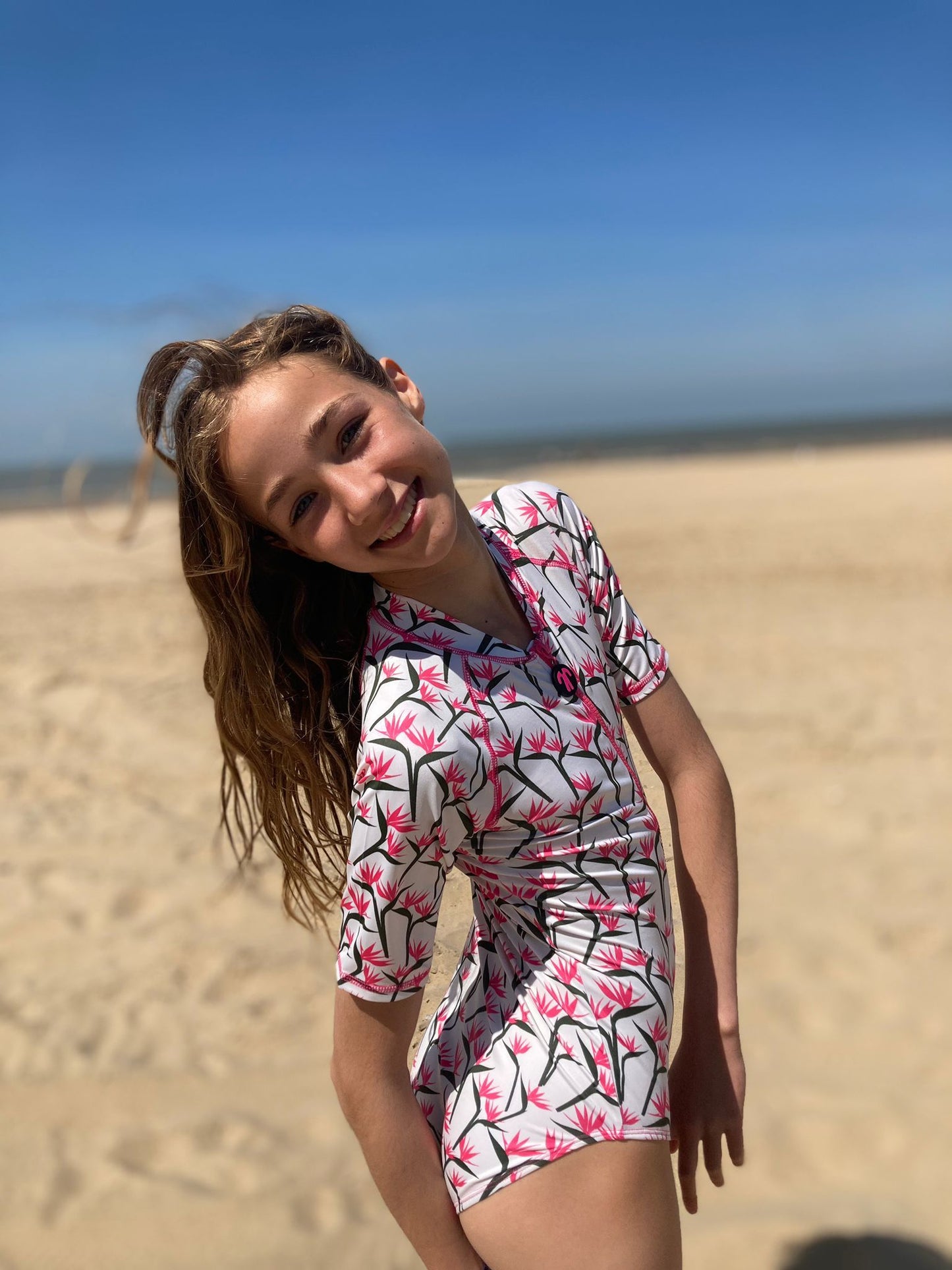 Model NOU de la Ducksday! Costum de baie întreg, din lycra, prevăzut cu un fermoar practic, ceea ce îl face ușor de îmbrăcat și dezbrăcat. Acoperă zona sensibilă a umerilor și are factor de protecție solară 50+!