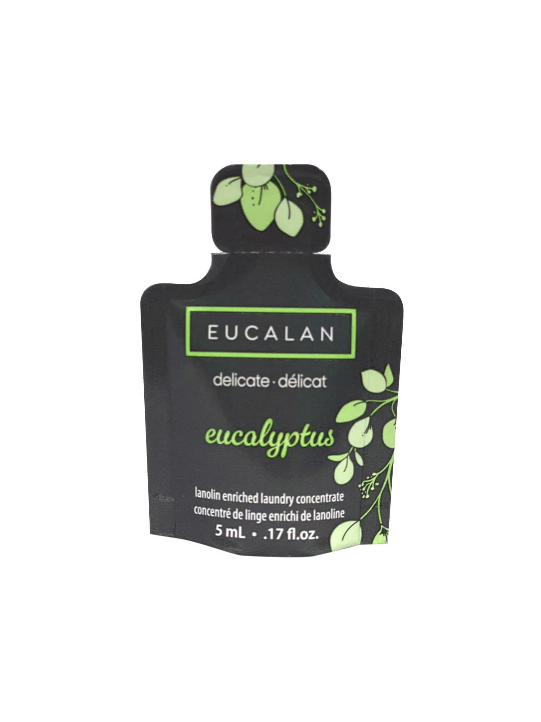 Detergentul delicat Eucalan fără clătire este un detergent non-toxic, biodegradabil, fără înălbitori, fosfați, arome sintetice sau coloranți. Eucalan are un pH neutru și este împachetat în sticle ușor de reciclat, fără BPA, fără coloranți. Disponibil în 5 arome, Eucalan are arome date doar de uleiuri esențiale (în afară de cel fără aromă). Lanolina se comportă ca un balsam natural, păstrând fibrele suple și reducând depunerea de praf. Eucalan respectă strict normele europene, este "rapid" biodegradabil.