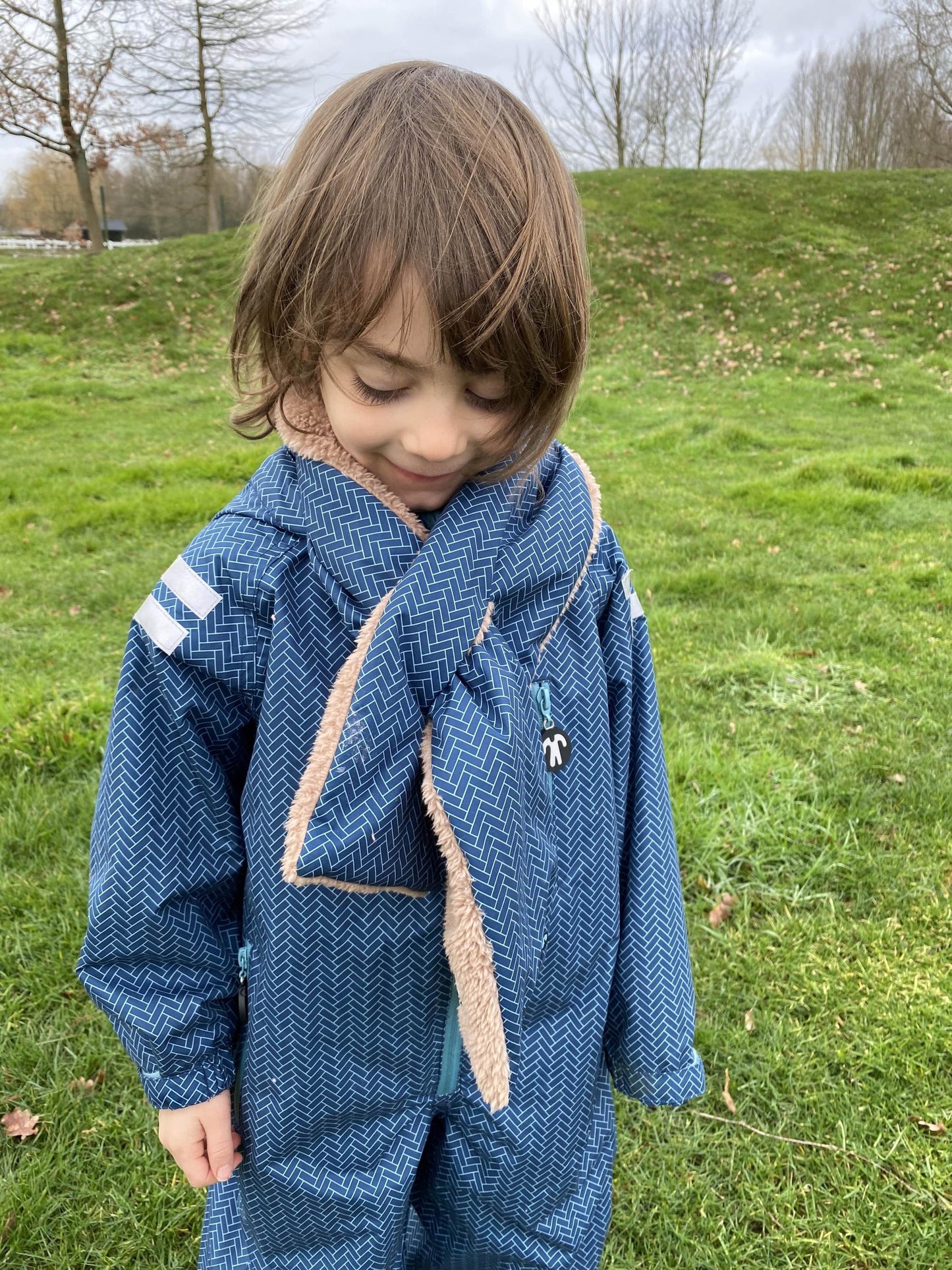 Completeaza-ti outfitul Ducksday cu fularul pull-through, pentru adulti si copii. Fularul este confectionat la exterior din material waterproof, iar interiorul moale si pufos este confectionat din fleece soft teddy.