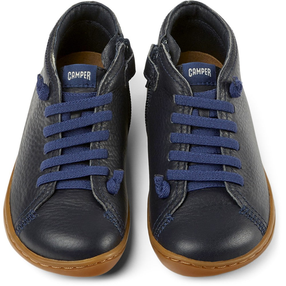Aceste ghete de piele, înalte până la nivelul gleznei, sunt modelate exact dupa forma anatomică a piciorului, mai late în față, lăsând sufiecient spațiu pentru degete, dar modelându-se perfect pe călcâi și gleznă. Cusute la 360 de grade pentru o durabilitate maximă, ghetele Camper Peu Dark Blue se încalța foarte ușor datorită șireturilor elastice ,confectionate din 87% plastic reciclat, și a fermoarului lateral. Inserturile detașabile din interior oferă o amortizare suplimentară și un confort deosebit. Copiii vor îndrăgi comoditatea și designul lor!