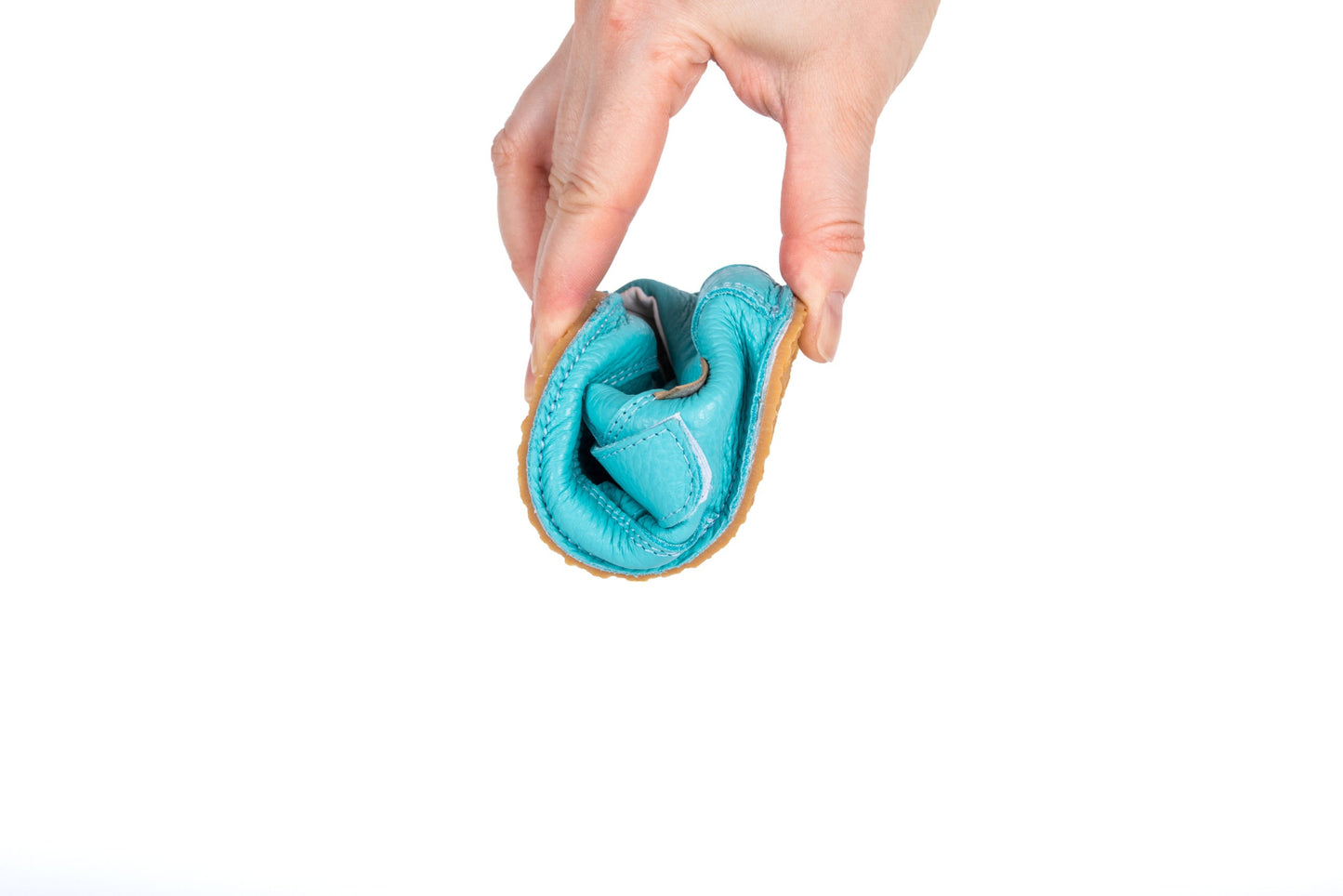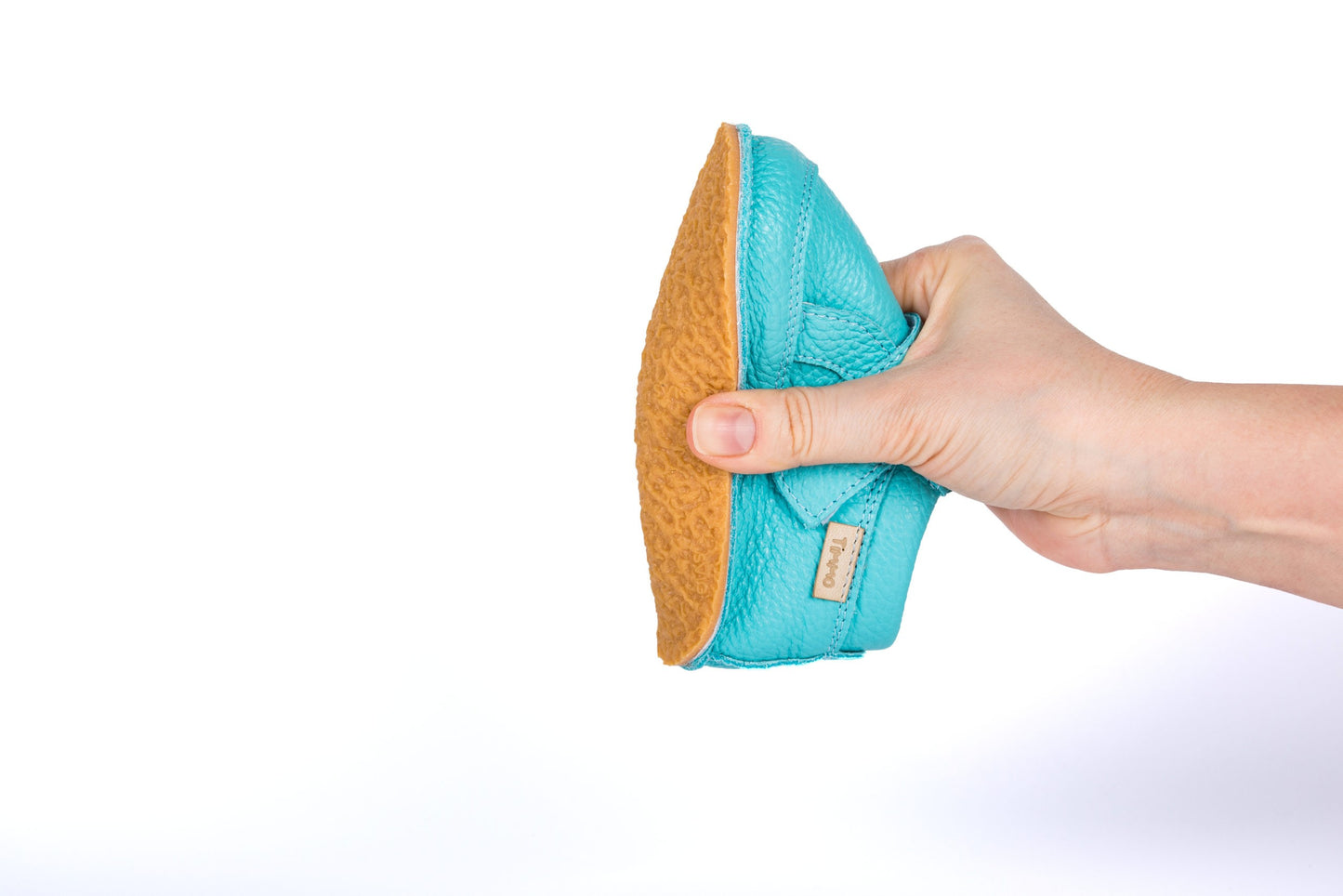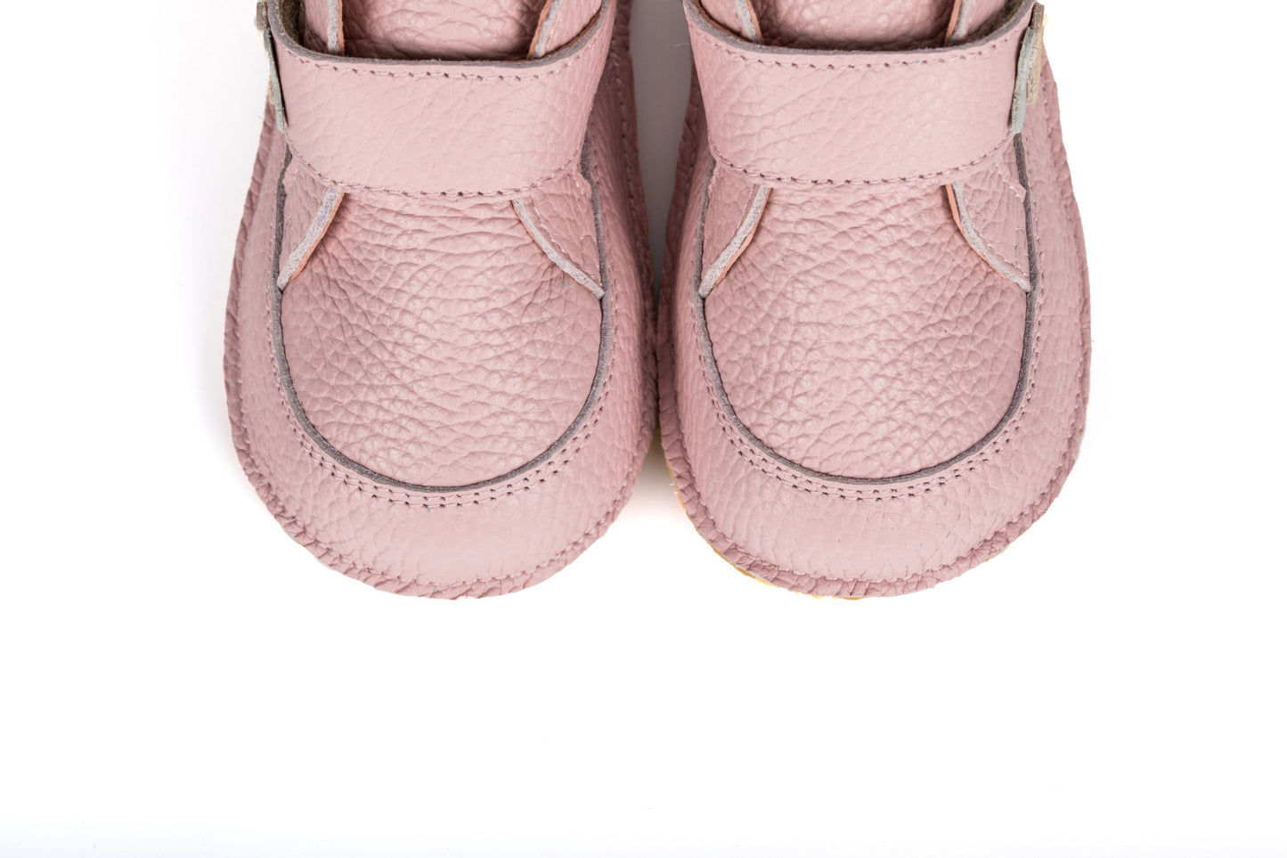 Ghetuțele barefoot permit mișcarea și dezvoltarea naturală a piciorului. Realizate manual din piele naturală 100%, netratată, moale, formatul respectă recomandările medicale și principiile mersului desculț, fiind recomandate de ortopezi pentru primii pași. Disponibile de la mărimea 17 la 27. Talpa exterioară pentru ghetuțele de toamnă este realizată din același material cauciucat flexibil, ca și cel al pantofilor, de această dată cu o grosime de 3-4 mm alcătuind astfel împreună cu celelalte straturi respectiv căptușeală la interior, branț spongios din burete antișoc și tălpic de piele cu o grosime de aproximativ 1,2 cm suficient de gros pentru a crea o barieră bună și pentru a proteja copilul de solul rece specific sezonului!