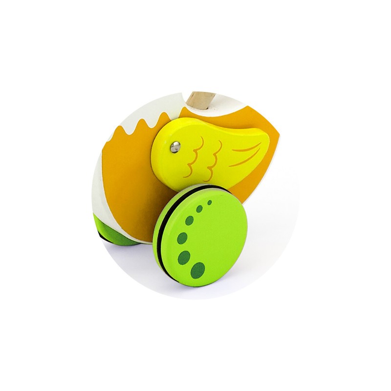 Aceasta jucarie de impins in forma unui cocos simpatic este deosebit de distractiva pentru cei mici. Corpul cocosului se deplaseaza cu sunet în timp ce e plimbat de cei mici. Jucaria este ambalata într-o cutie frumoasa cu fereastra.