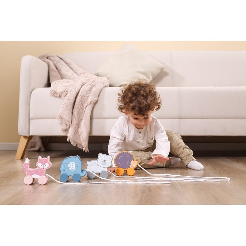 O jucarie de tras in forma unui arici simpatic. Companionul excelent care ii va incuraja pe copii sa mearga mai mult si sa imi imbunatateasca abilitatile motrice. Jucarie educativa din lemn, Montessori.