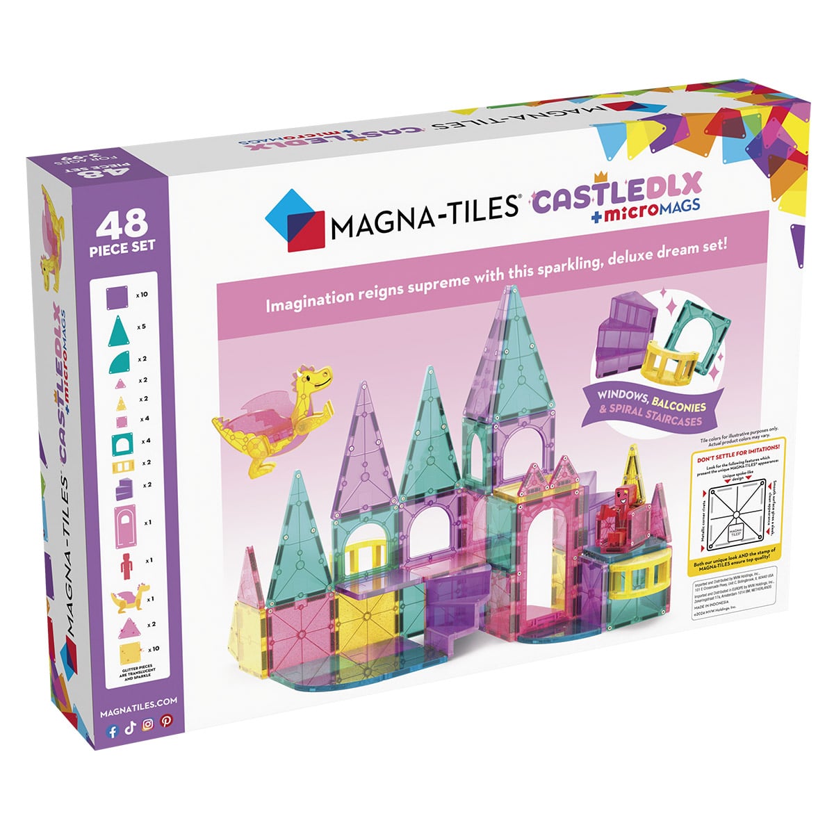 Setul MAGNA-TILES Castle Deluxe, cu 48 de piese, le deschide copiilor poarta spre o lume a poveștilor fantastice și a minunilor magnetice, unde imaginația domnește și basmele prind viață!