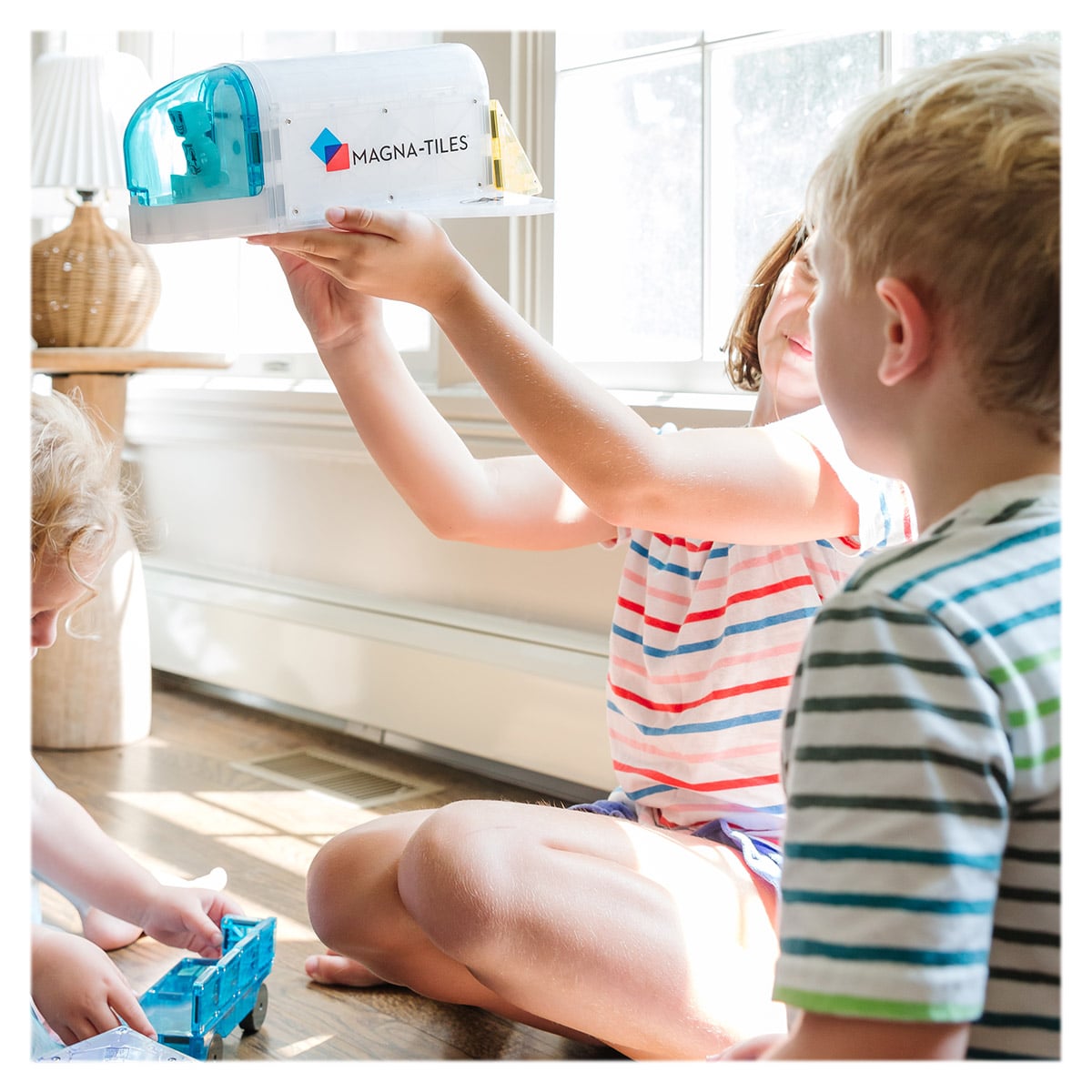 Cu setul magnetic MAGNA-TILES Space micii astronauți vor avea parte de aventuri spațiale captivante și de o experiență de construcție incredibilă, ce trece dincolo de granițele terestre. Setul conține inclusiv o navetă spațială unică, care stochează în mod convenabil toate piesele după joc.