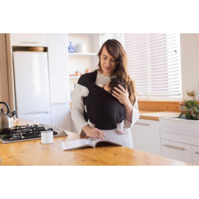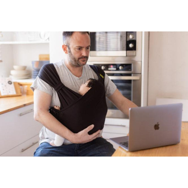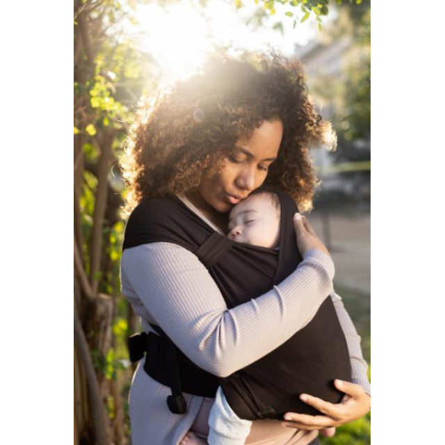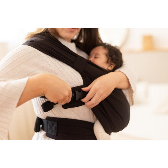 Combina ceea ce este mai bun din ambele universuri: simplitatea unui marsupiu cu catarame și confortul unui wrap elastic care se mulează perfect.