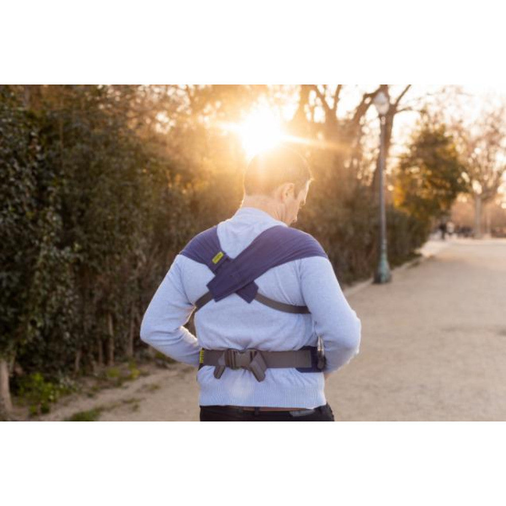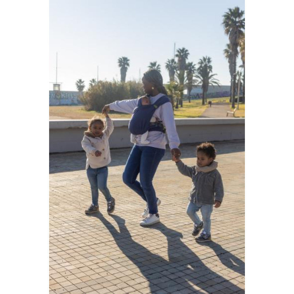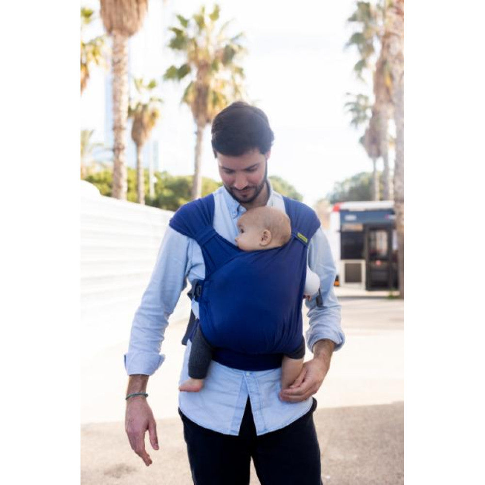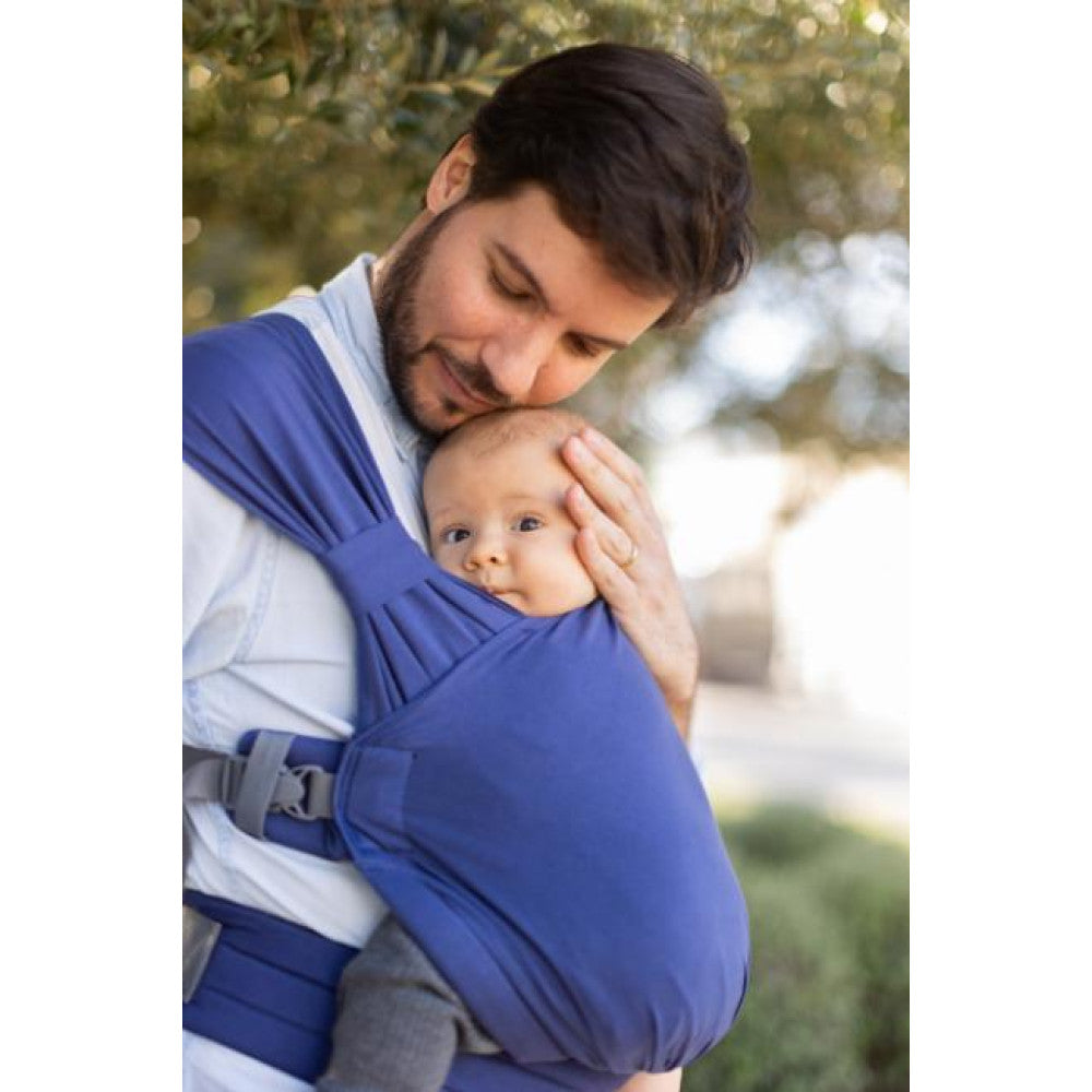 Combina ceea ce este mai bun din ambele universuri: simplitatea unui marsupiu cu catarame și confortul unui wrap elastic care se mulează perfect.