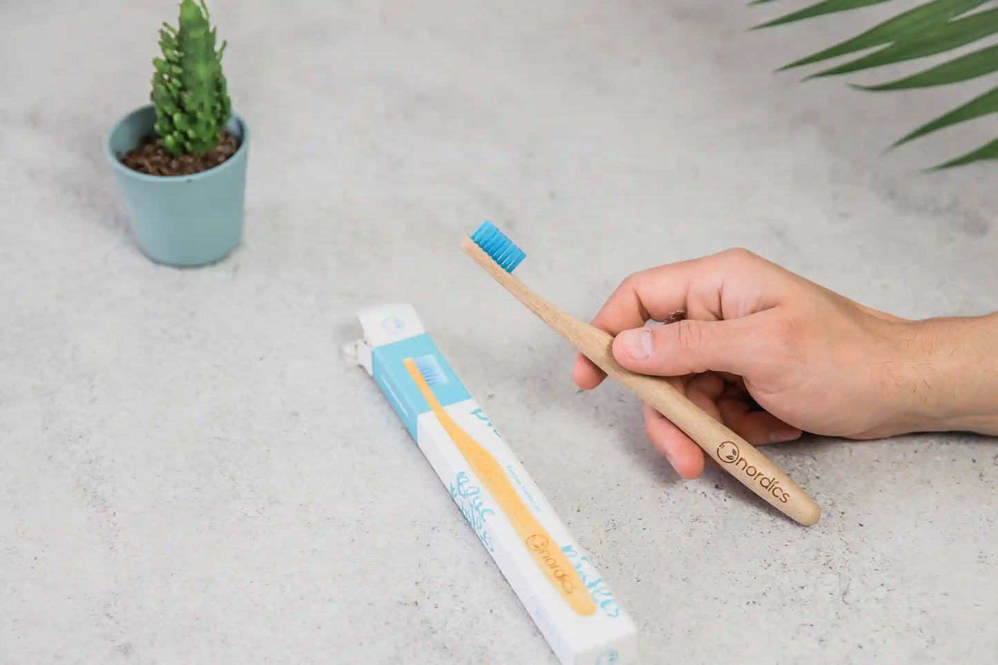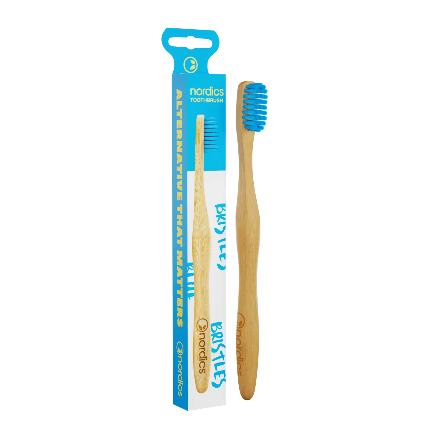 Periuță de dinți din bambus pentru adulți - albastră - Nordics