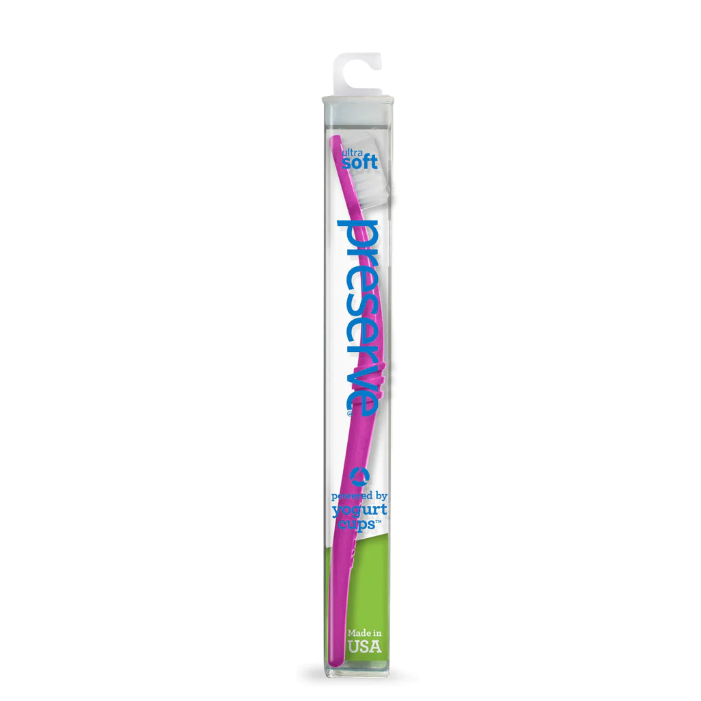 Periuta naturala de dinti confectionata din cutii de iaurt reciclate, fara BPA, fara ftalati.