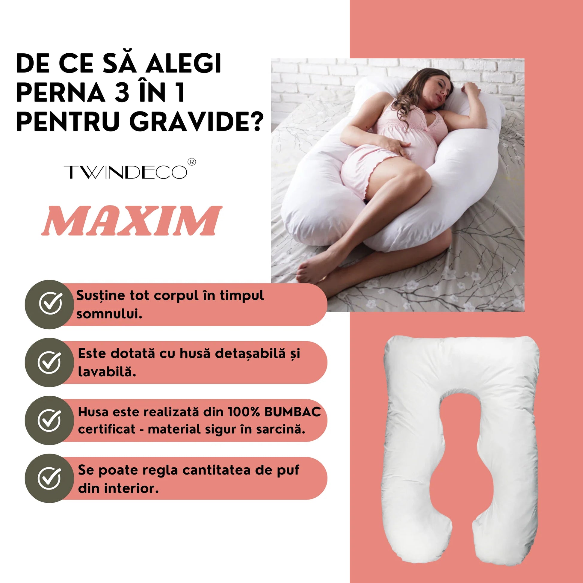 Caracteristici Perna pentru Gravide 3 în 1 TWINDECO Maxim