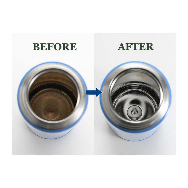 Produs de curățare pentru curățarea garniturilor, închizătorilor și a părții interioare a corpului termosurilor din oțel inoxidabil și sticlă, cănilor termos și a cănilor termos mari. Îndepărtează depunerile din băuturi, mucegai și murdărie. Produsul de curățare are efect dezinfectant și de albire și este complet biodegradabil. Pachetul conține 10 doze de curățare.