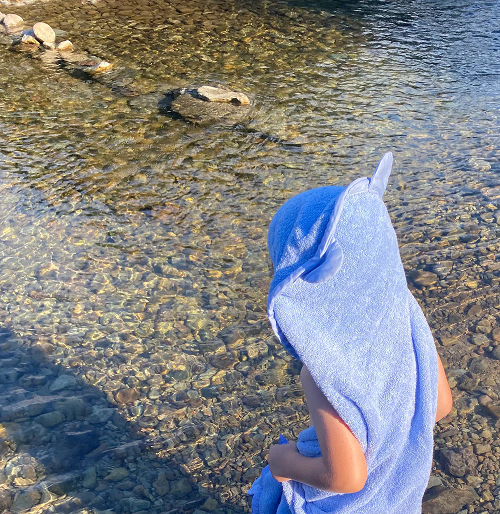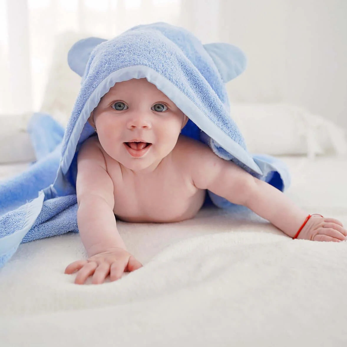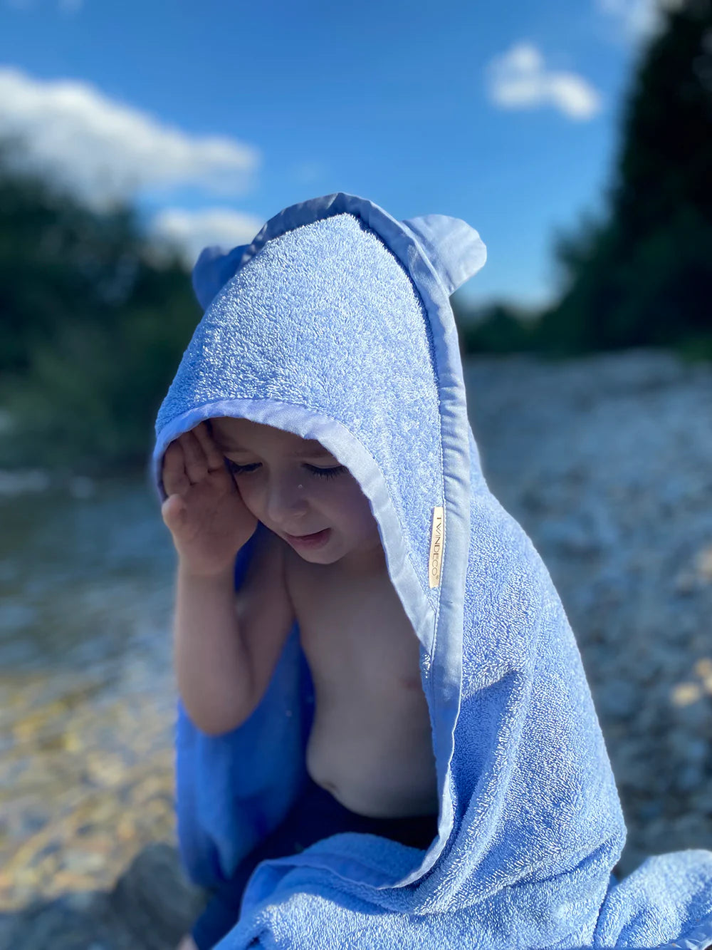 Prosopul cu glugă pentru copii este moale, plăcut la atingere, absoarbe rapid apa și păstrează căldura corpului micuțului după baie.
