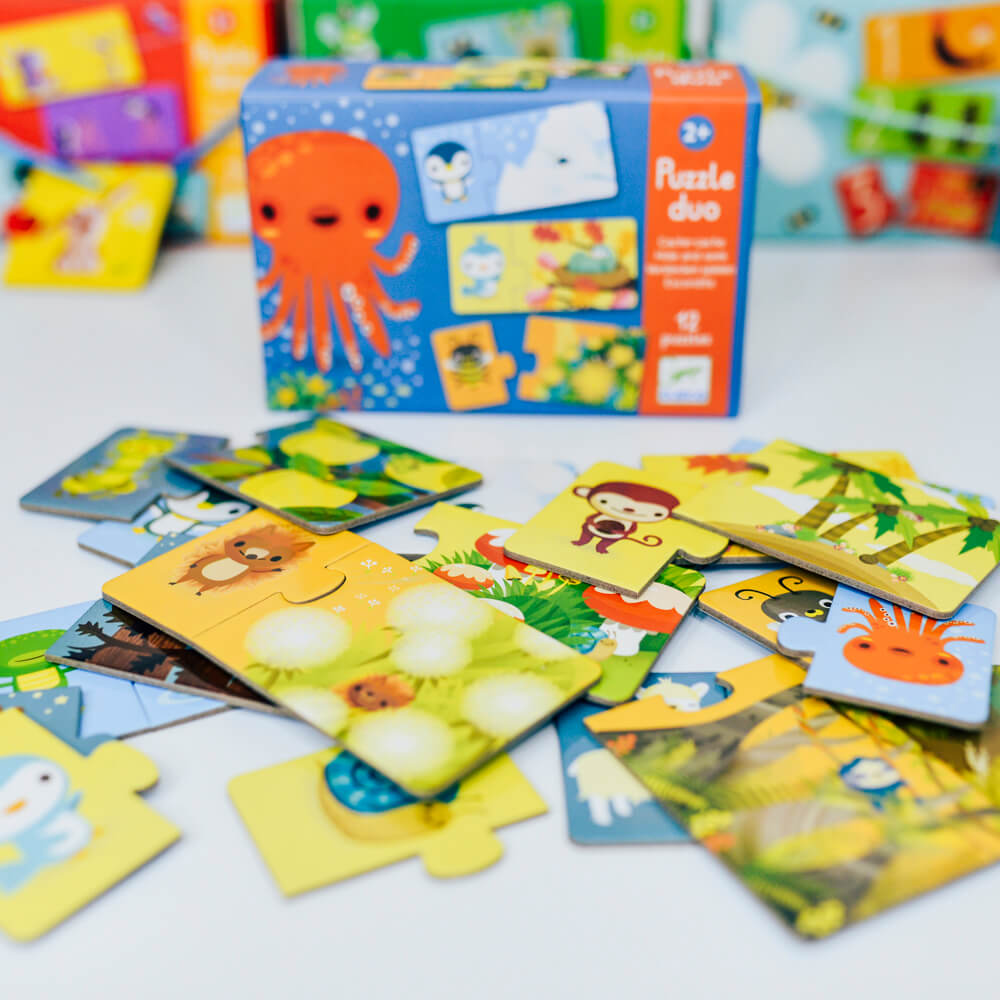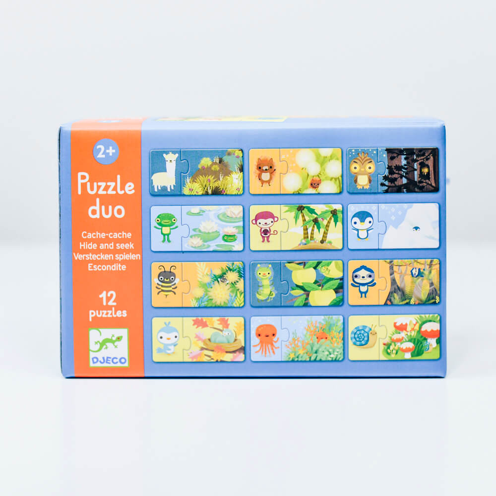 12 puzzle-uri din carton, fiecare din câte 2 piese.