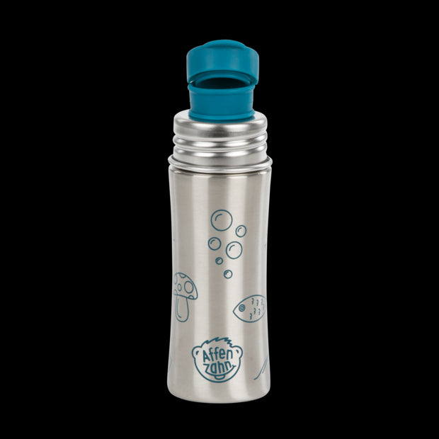 uO sticlă din inox practică și rezistență, care încape cu ușurință în orice geantă, rucsac sau ghiozdan. Capacitatea recipientului este de 325 ml. O varianta ecologică și sustenabilă la recipientele din plastic.