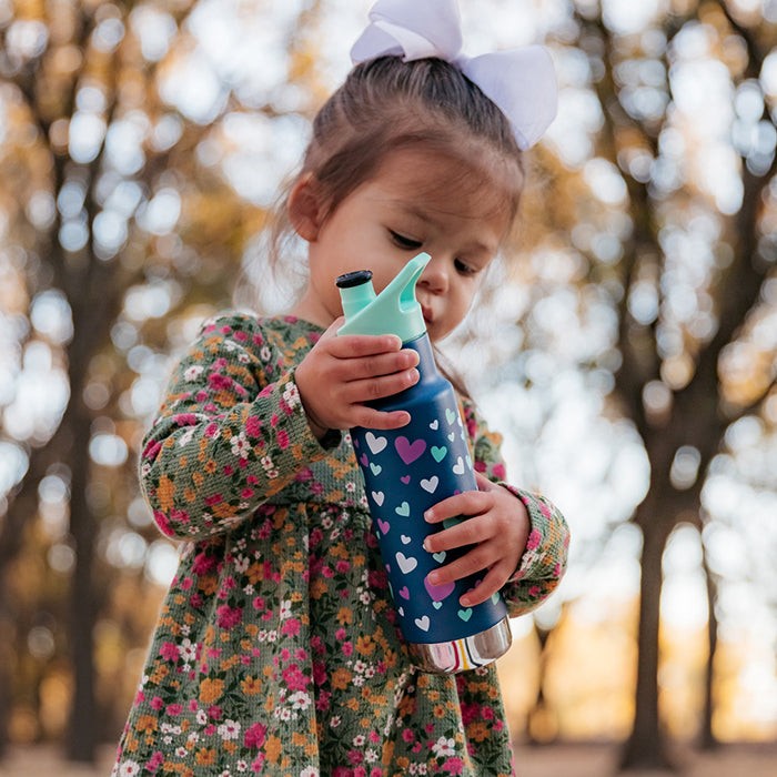 Recipient termos din oțel inoxidabil 355 ml cu capac Sport - Klean Kanteen - Kid Classic Narrow Navy Hearts
