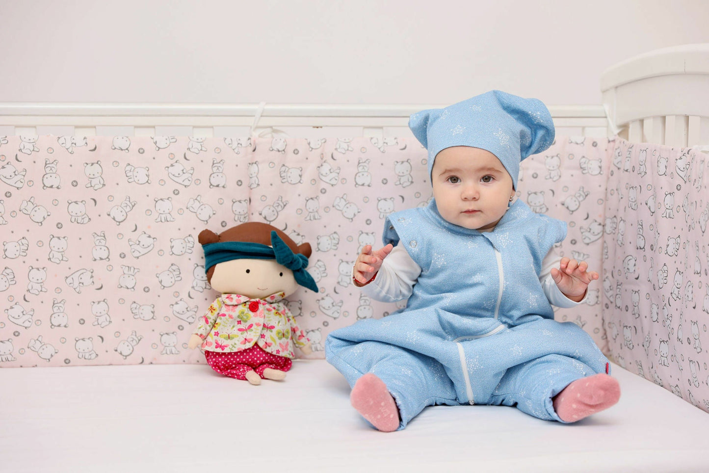 - În funcție de grosimea aleasă (tog), sacul este umplut cu vatelină antialergică (poliester), asigurând că micuțul beneficiază de un somn confortabil și fără alergii.