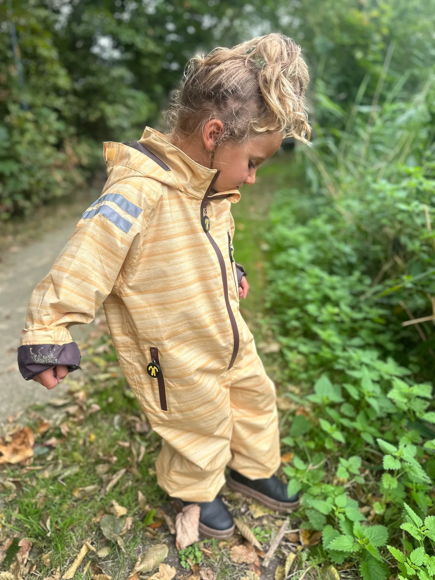Salopeta de ploaie este ideală pentru joaca în natură. Aceasta este concepută dintr-un material foarte ușor care protejează copiii de apă și le permite să se miște în voie.