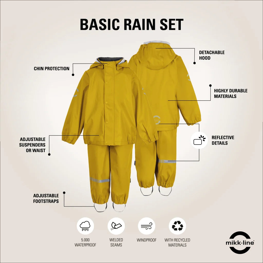 Set de ploaie din materiale functionale rezistente la apă și vânt, de cea mai bună calitate, cu o croială bine gândită. Materiale eco-friendly, non-toxice, impermeabile și ușoare care asigură confortul copilului indiferent de vreme.