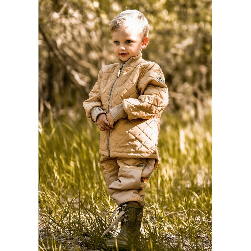 Set termorezistent matlasat format din pantaloni și jachetă, moale și confortabil, alegerea perfectă pentru copiii activi, care petrec mult timp în aer liber! Setul este căptușit cu fleece moale, fiind ideal pentru sezonul rece - toamna târzie și chiar iernile blânde.