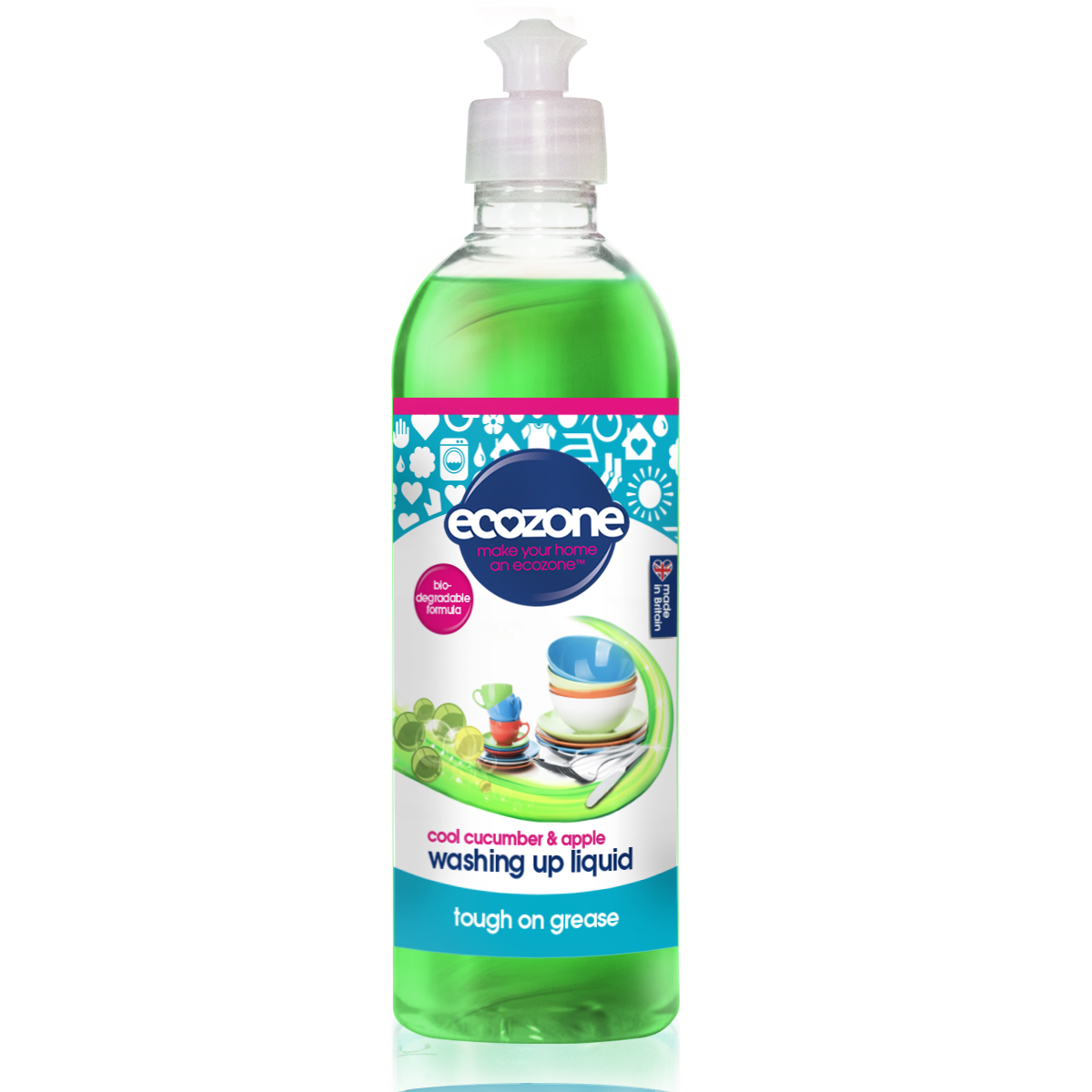 Soluție concentrată pt spălat vase, cu castravete și măr, Ecozone, 500 ml