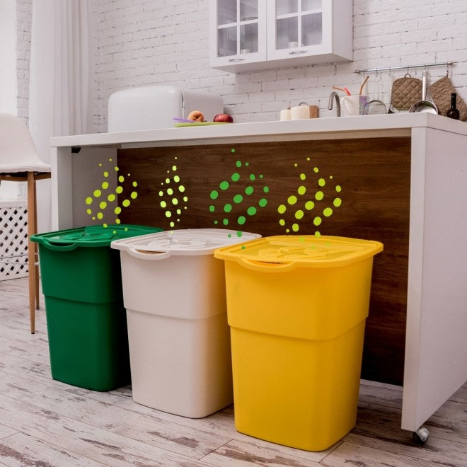 Eliminați acele mirosuri neplăcute care apar din cauza rezidurilor alimentare ce se scurg prin pungile de gunoi și care se descompun, cu ajutorul soluției cu parfum racoritor de citrice.