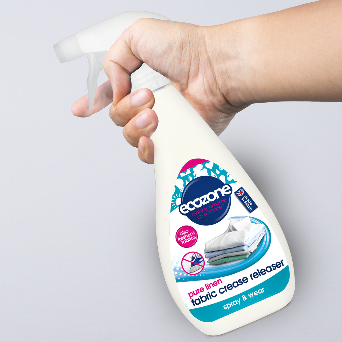 Soluția este un spray cu acțiune rapidă care elimină cutele și acționează și că odorizant pentru haine, parfumul minunat al acestuia împrospătând țesăturile.