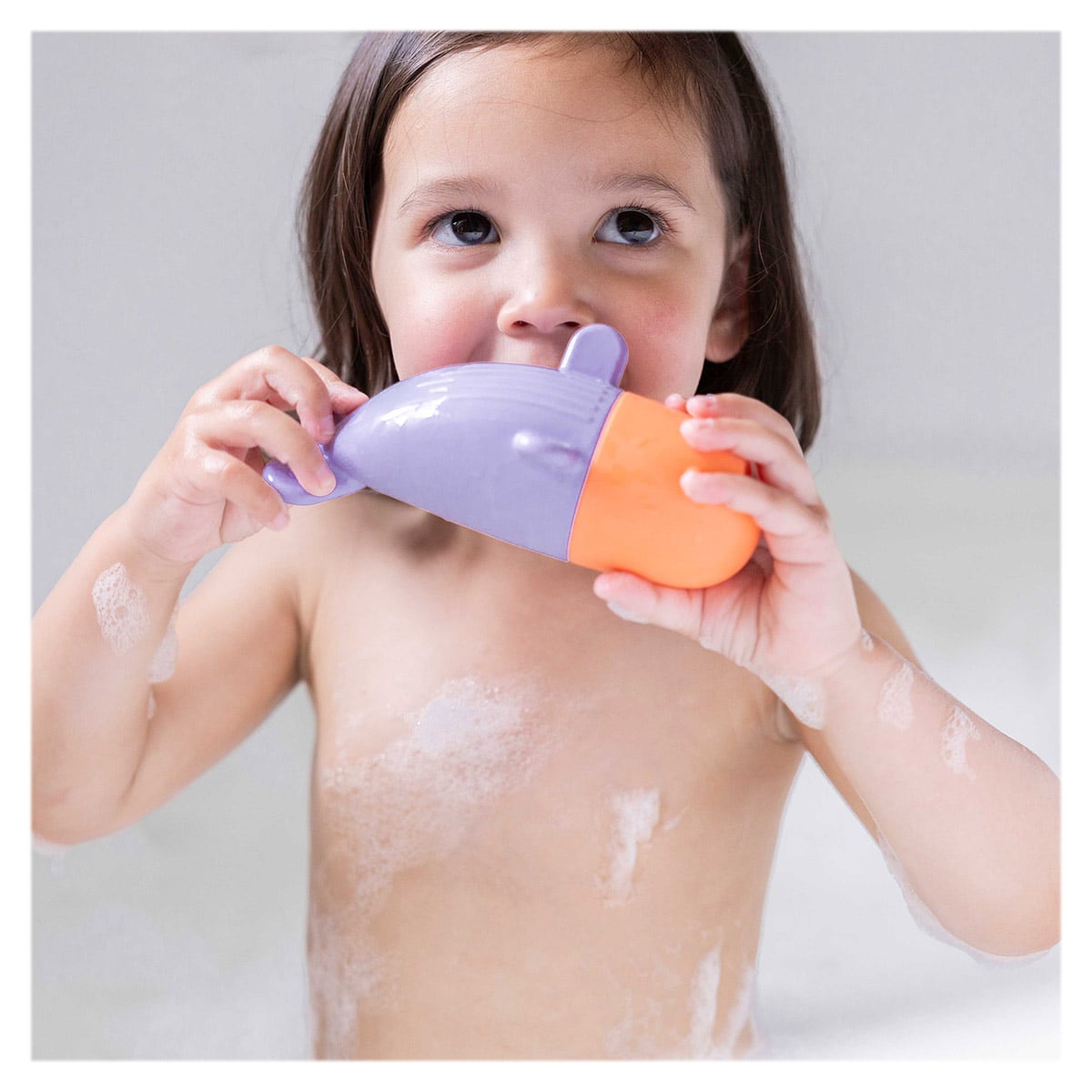 Cu un design ergonomic, balena poate fi umplută cu ușurință chiar și de mânuțele mici ale copiilor. Doar scufund-o, strânge-o ușor și las-o să se umple, apoi apasă pentru a elibera jeturi de apă – o distracție garantată la fiecare baie!