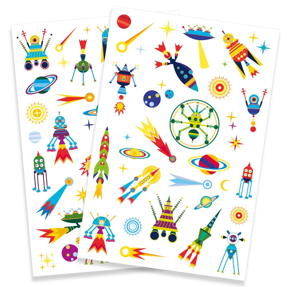 Conținut: 2 foi de tatuaje temporare care strălucesc în întuneric și 1 set de instrucțiuni.