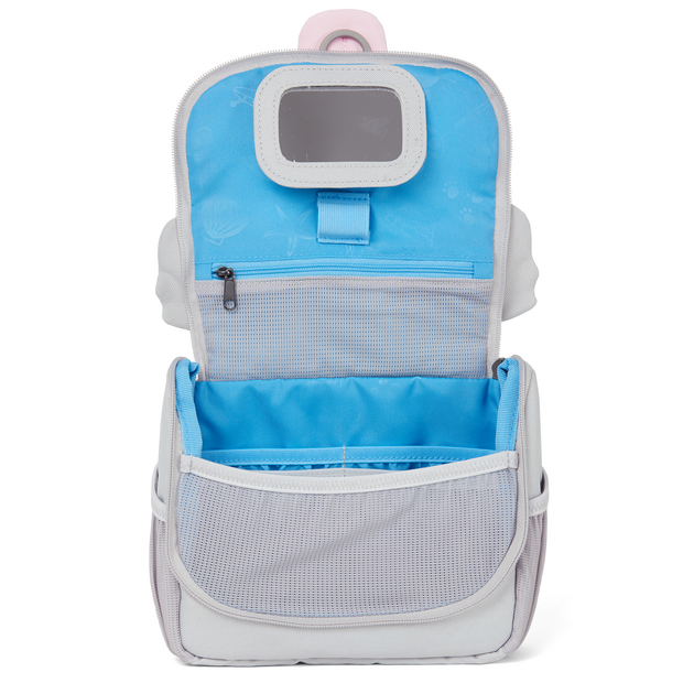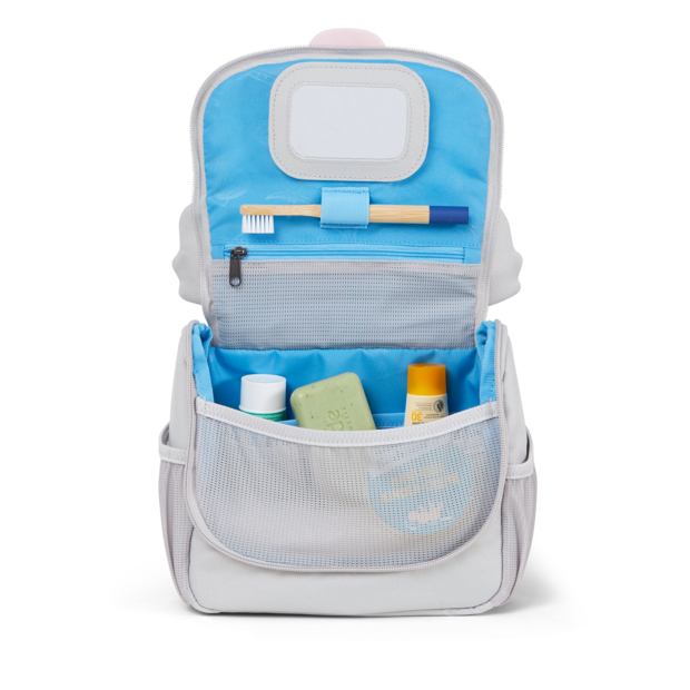 O trusă de toaletă frumoasă și practică pe care copiii o vor iubi! Spațiul generos este compartimentat inteligent și practic și are o mică oglinjoară utilă la interior. Designul caracteristic Affenzahn și eticheta limbuță pull-out, trade mark al brandului, fac că această trusă de toaletă să fie un accesoriu must have pentru orice copil. Cei mici vor adoră să aibă la îndemână toate cele necesare igienei zilnice împachetate într-un mod atât de simpatic.