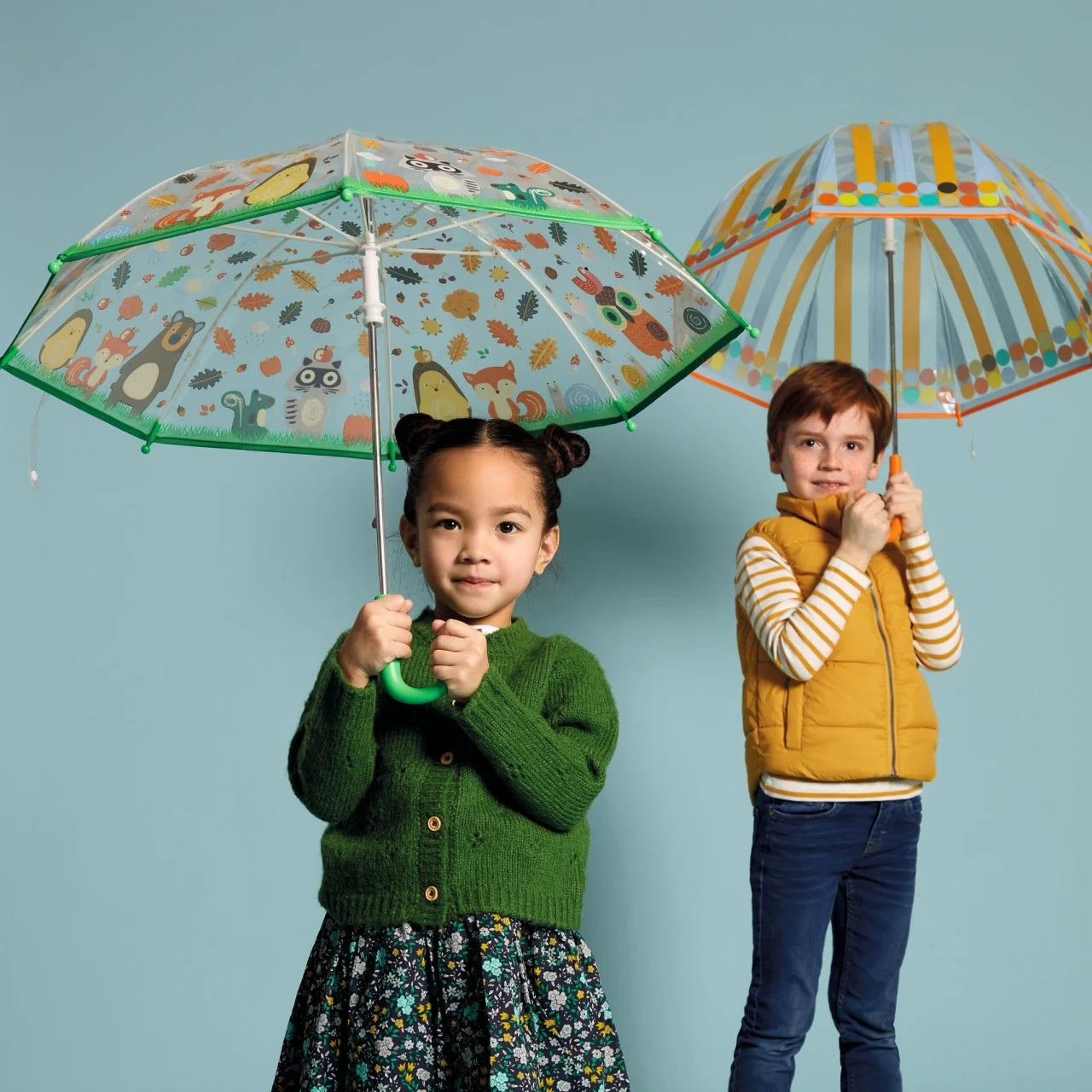 Să mergem la o plimbare prin pădure în ploaie! Cu dimensiunile sale mici și forma lată, această umbrelă fistichie, dar foarte practică, este potrivită pentru copiii de la 3 ani! Folosirea unei umbrele la fel ca un adult poate fi atât de distractivă! Se deschide manual, cu un sistem de siguranță, astfel încât copiii să îl poată deschide și închide fără să-și ciupească degetele.
